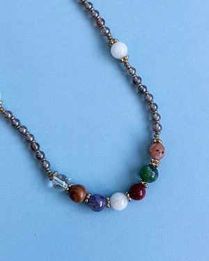 This boho-chic chain necklace is dotted with natural stones that add pops of earthy color and effortless charm. Perfect for layering or wearing solo, it brings a relaxed, boho vibe to everyday looks.