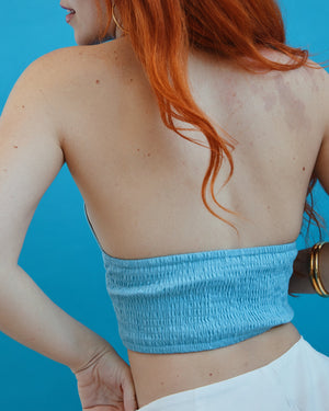 Turn up the charm in this corset crop top with a halter neck and sexy triangle cutout on the front. The smocked back keeps it comfy while giving you that perfect, flattering fit.