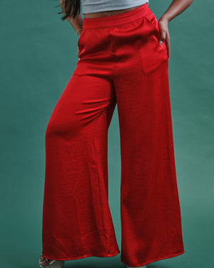 These vibrant flared pants bring effortless drama with their flowy silhouette and bold, eye-catching color. Pair them with your favorite crop top and prepare to strut — these pants were made for making an entrance.