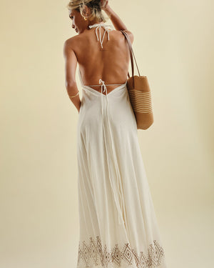 Effortlessly elegant, this midi dress features a flattering silhouette with delicate tie straps that add a soft, feminine touch. The open back detail brings a hint of allure, perfectly balanced by its graceful length and flowy fit. Light and breezy, it’s your go-to piece for sunlit days, vacations, and relaxed evening outings.