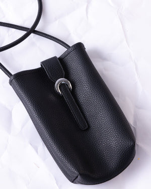 This sleek, pebbled-leather pouch is the perfect minimalist companion for keeping your phone and cards secure while on the move. Featuring a stylish silver-tone buckle closure and a slim profile, it adds a touch of sophisticated edge to any outfit without the bulk of a full-sized bag.