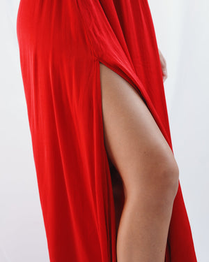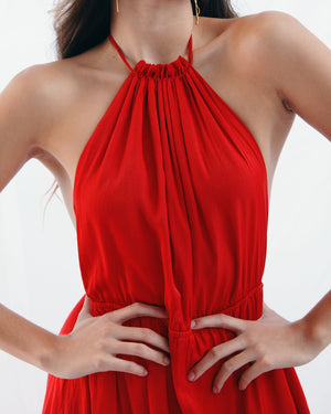 Float through the room like a summer dream in this flowy halter-neck maxi dress with an open back and a daring thigh-high slit. Effortlessly elegant with just the right touch of drama, it’s made for moonlit strolls and unforgettable entrances.