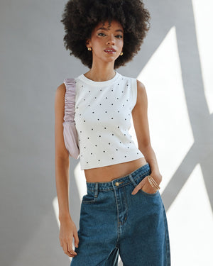 This cute knitted top is sprinkled with tiny polka-dots for that effortlessly casual but still chic vibe. Soft, stretchy, and ready to pair with literally anything — your new “wear on repeat” piece has officially arrived.