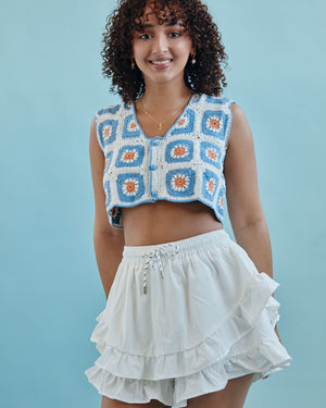 Flouncy and full of charm, this mini skirt features playful tiered ruffles and an easy elastic waist for effortless wear. Perfect for twirling through sunny days or dressing up on the fly, it’s a feel-good staple with serious fun factor.