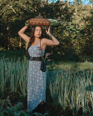 Bring the sunshine wherever you go in this vibrant midi dress, designed with slim straps and a breezy, flowy and asymmetric skirt made for twirling. The playful open back with an oversized bow tie detail adds a flirty surprise that’s just as stunning coming as it is going.
