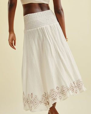 Embrace effortless elegance with this midi skirt, designed with a soft, flowing silhouette that moves beautifully with every step. The high-rise waistband offers a flattering, comfortable fit while the timeless design blends ease with understated charm.