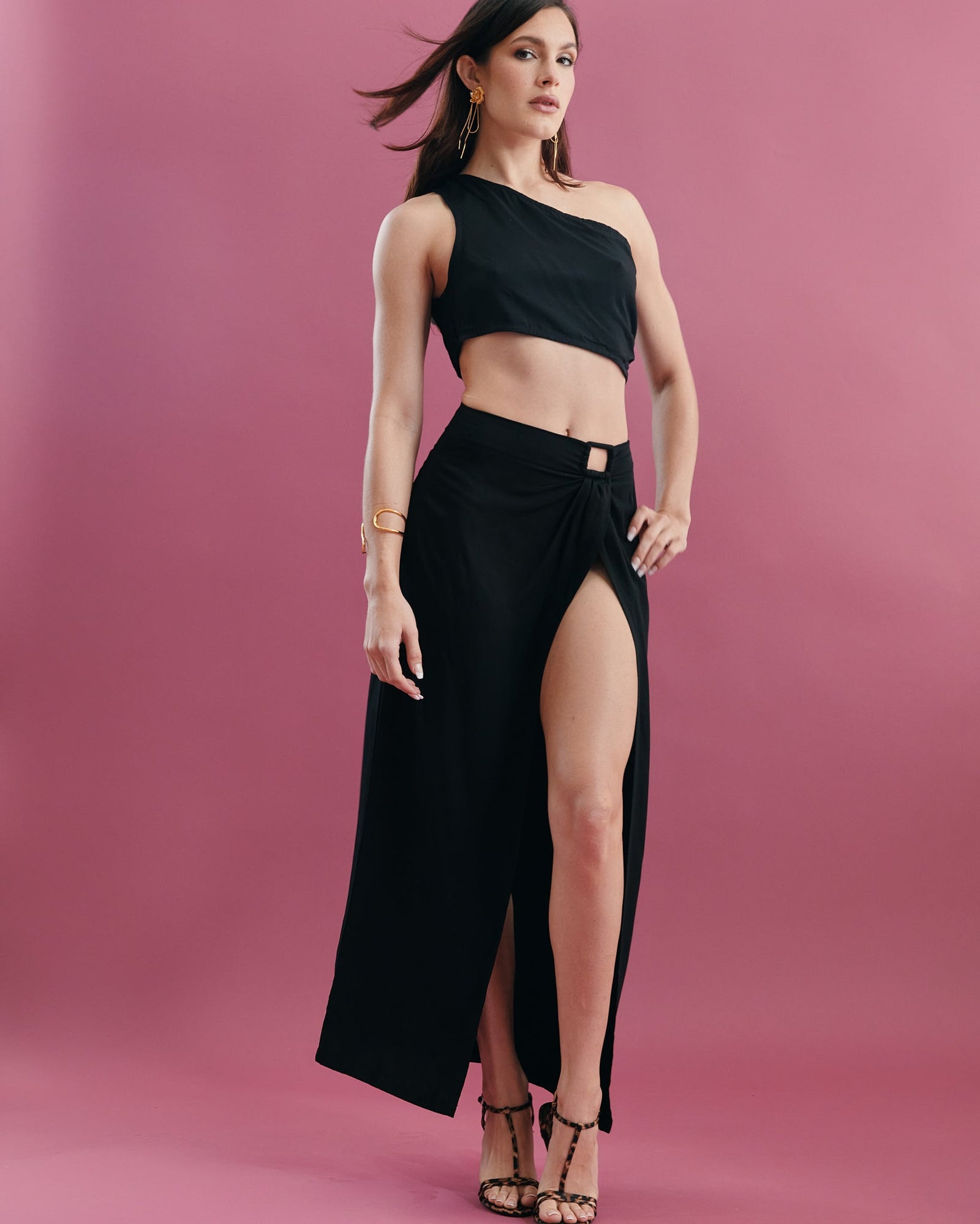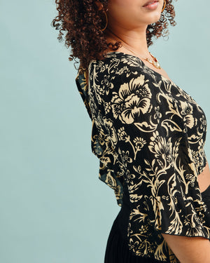 Turn heads in this flirty crop top featuring a plunging neckline and flowy, ruffled sleeves that move beautifully with you. Designed to flatter and feel fabulous, it’s the perfect pick for sunny days, dance nights, and everything in between.