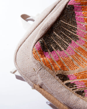 Bring the glow of golden hour wherever you go with this backpack, featuring vibrant beaded details inspired by dreamy sunset skies. Designed with two zippered compartments—a spacious main zip closure and a front zip pocket—it keeps your essentials stylishly organized. Perfect for everyday adventures, it blends relaxed boho charm with warm, sunset-soaked vibes.
